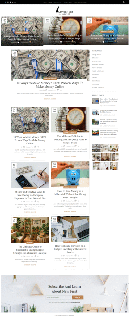 This project demonstrates my ability to build content-rich, community-focused platforms that combine engaging design, technical performance, and strategic content presentation. CuriousPen.online serves as a hub for knowledge sharing and creative expression, reflecting a seamless balance between aesthetics, functionality, and user engagement.