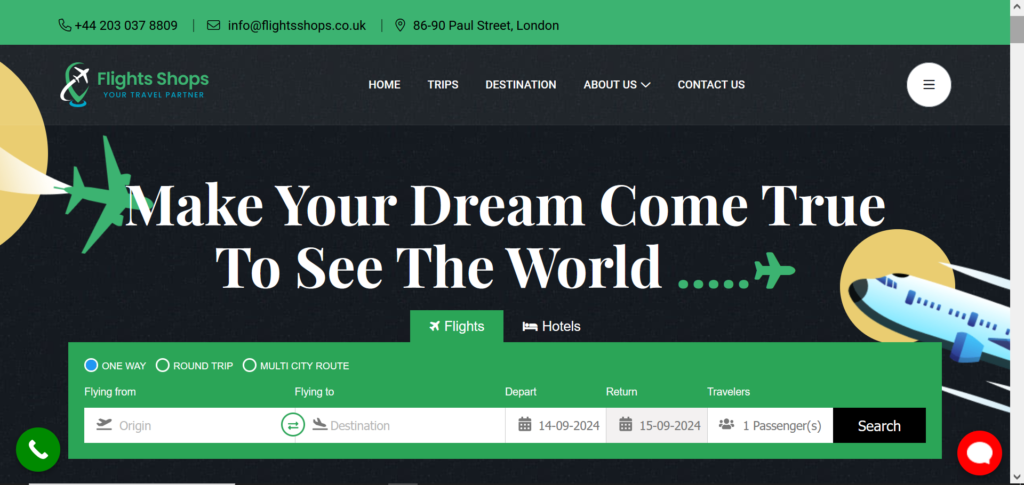 For Flightsshops.co.uk, I designed and developed a professional travel website focused on flight bookings, travel packages, and customer convenience. The goal of this project was to create a user-friendly platform that allows travelers to easily search, compare, and book flights while providing a seamless and reliable online experience.